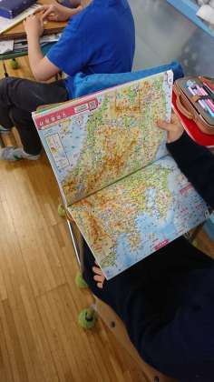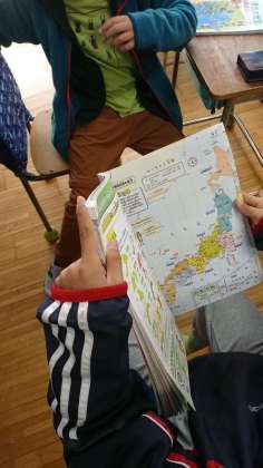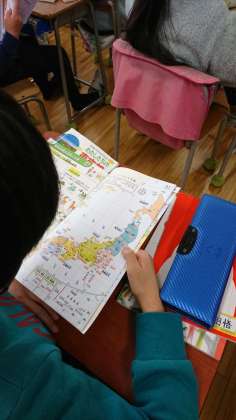 4年生が、地図帳を使って都道府県を覚える学習をしていました。