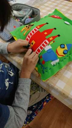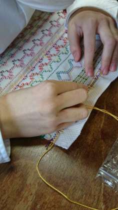スウェーデン刺繍、クッション・・・それぞれの学年で取り組む作品が違います。たくさん指導の人手がほしいところですが、家庭科専科も加わり心強い布陣です。
