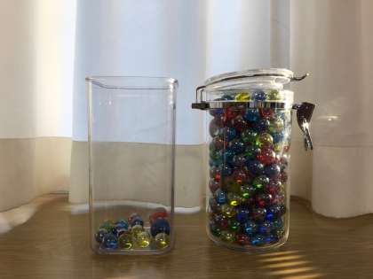 全員登校が始まった6月から、ビー玉貯金をしています。