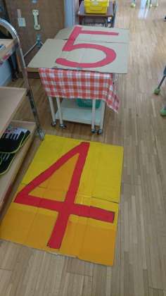 となりの教室で、大きな「4」と「5」のボードが作られていました。さてさて、これは・・・来週の土曜日あたりに使うものでしょうか???