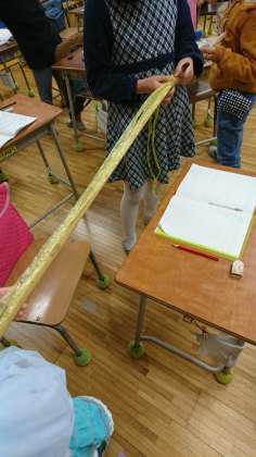 順番が逆になってしまいましたが、これで、もっと長い長さを測ることができる巻尺の登場ですね。小学校の学習では、よく必要に迫られる場面を作って、新しい学習に入っていきます。