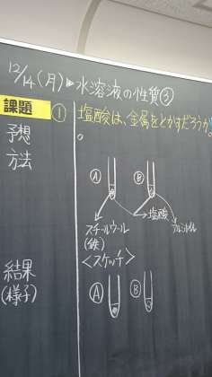 6年生が、理科室で「水溶液の性質」の実験を行っていました。