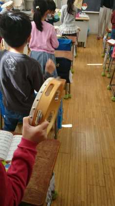 歌は、5番まであって、楽器が順に登場していきます。自分の番以外は、歌と手拍子で参加します。最後の5番はみんなで演奏です。