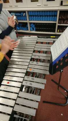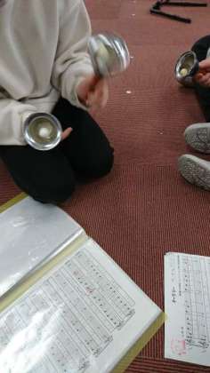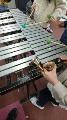 今日は、鉄筋とハンドベルで「オーラリー」の演奏の練習をしていました。