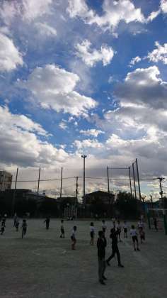 昼休みの校庭は、何だか薄暗く、寒さを感じますが、子供たちは元気に走り回っています。半袖のTシャツに半ズボンの子もちらほら。自分が子供の頃を思い出します。