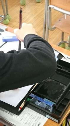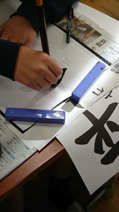 3年生の書き初めの様子を見てから3階に上がり、渡り廊下を渡っていくと、墨のにおいが・・・もしかして・・・
