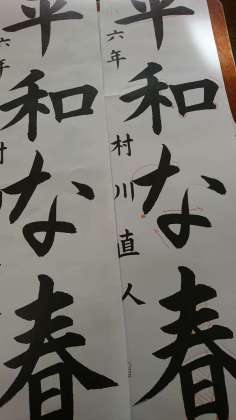 やはり6年生も書き初めの練習をしていました。6年生が書くのは「平和な春」。平仮名の「な」が難しいです。漢字と平仮名、字の大きさのバランスも難しそうです。小学校時代の書き初めの集大成となる作品、期待しています。