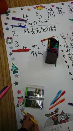 今日も朝から準備をしていました。手づくりのプログラムを皆で書きます。1人ずつの出し物もあるようです。楽しそう。