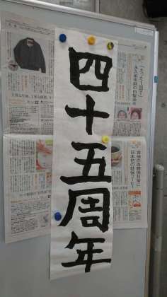 3・4時間目がきはだ学級45周年祭でした。小アリーナで行っていました。左の習字で書かれた「四十五周年」の毛筆は、出し物の中のライブ書写で書かれたものです。斬新!面白い出し物です。