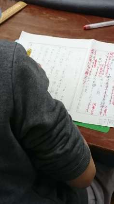 4年生が作文用紙に何か書いたり、読んだりしていました。
