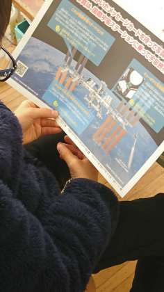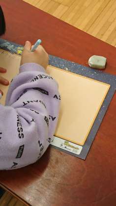 1年生が、「子ども宇宙プロジェクト」のメッセージカードを書いていました。