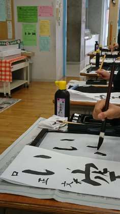 今日は、お手本で字を確認して、半紙に練習をしていました。4年生が書く字は、
