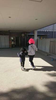 今日は、皆かわいい被り物をしています。発表は、最後の「森のくまさん」ペア(写真左)しか見られなかったのですが、楽しんだ雰囲気が伝わってきました。