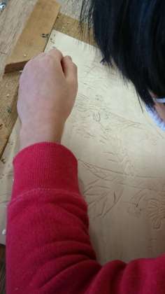 彫刻刀も、練習の成果が出ていて、上手に使えていましたが、ちょっと油断すると支える手が前に出てきたりして、見ている方は、ひやりとするのでその都度声をかけます。