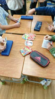 室内遊びでは、2学期から各学級に配られたカードゲームをしていました。楽しそうです。