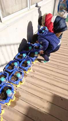 1年生は、チューリップの球根を植えて、お世話をしています。