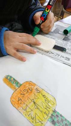 2年生は、図工で「わたしのスペシャル時計」の制作をしていました。2学期から取り組んできて、今日は仕上げのようです。
