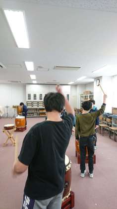 高学年が、音楽で太鼓を叩いていました。太鼓は、力強く叩かないといい音が出ません。強く叩けるように、太鼓の上に紙コップを置いて、それが高く飛び上がるように叩く練習をしていました。真ん中の写真、見事にコップが飛び上がっています。