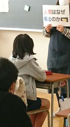 今日は、6年生の計測の日でした。計測前に、保健指導があります。今日は、「睡眠」について養護教諭から話がありました。「人間はなぜ眠るのか」・・・