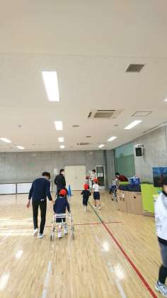後で聞いたところ、「ハンドサッカー」という競技だそうです。相手のゴールに入れる「サッカー型」のゲームですね。3学期は、この競技をがんばっていきます!