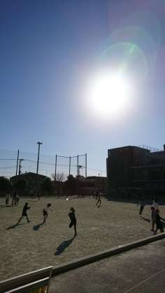 昼休み、暖かな気候の中、子供たちが元気に走り回っていました。