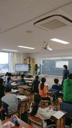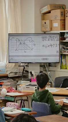 5年生は、算数で三角形の面積の求め方を考えていました。