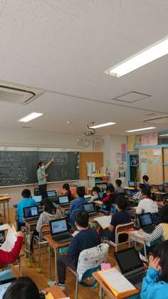 4年生は、総合的な学習の時間に「手をつなごう〜ともに生きる〜」の学習に入っていました。