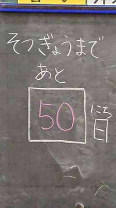黒板の端の方に、「そつぎょうまであと50日」の文字を見付けました。ああ・・・いよいよ卒業までの残りが具体的に見えてきました。一緒に過ごせる残りの期間を大切に過ごしていってほしいと思います。