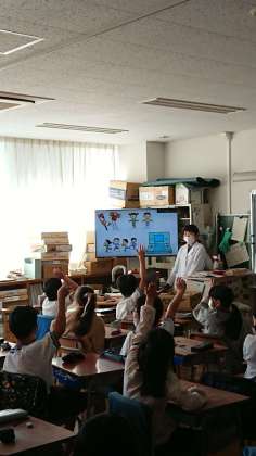 計測前の養護教諭による保健指導では、お正月の話からゲームの話へ。ゲームやスマートフォン、パソコンといったIT機器との上手な付き合い方いついての話がありました。
