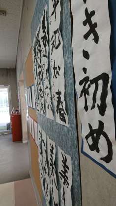 きはだ学級でも、廊下に書き初めの展示が揃いました。