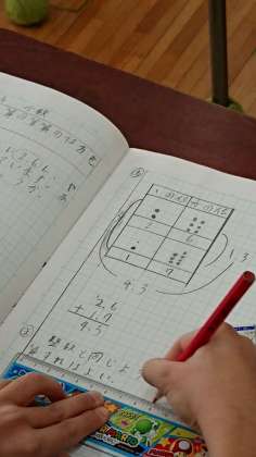 筆算の仕方を学習する前に、まずは筆算ではない方法で考えていました。位に分けて、同じ位の数字同士を計算する方法が出ていました。この考え方が筆算につながります。
