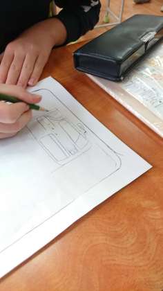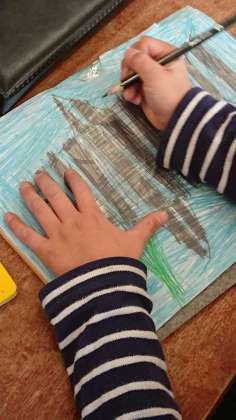 下絵を描いて、カーボン紙で板に写していきました。何度もめくって確かめながら描いていました。