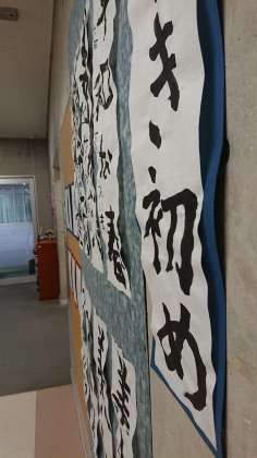 きはだ学級の書き初めも廊下に飾られています。