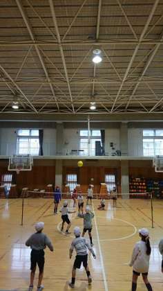 今日はソフトバレーボールに取り組んでいました。ネットを挟んでチームで対戦をしています。バレーボール型のゲームは、経験を積むことが必要で、結構難しいです。まだ練習を始めたばかりで、なかなか続きません。それでも皆とても楽しそうです。ラリーが続くようになると、さらに楽しくなりますね。