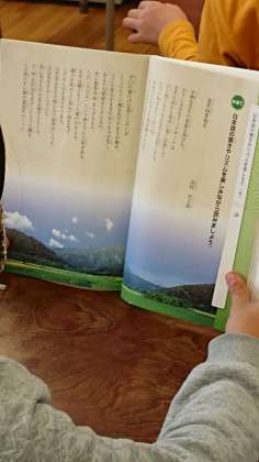 今日は、日本の詩を学習していました。高村光太郎さんの「先生山を見る」です。「日本語のひびきやリズムを楽しみながら読もう。」というめあてを確認して、皆で読み始めます。