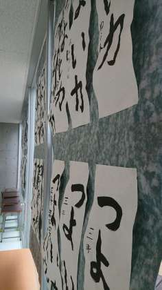 廊下には、書き初め作品が飾られました。