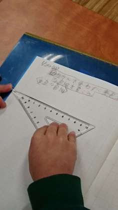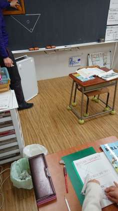 きはだ学級の算数です。垂直を描く方法を考えていました。