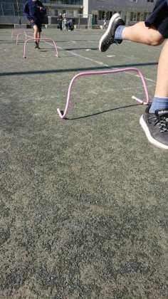途中、ミニハードルゾーンを越えていき、適度に心肺に負荷がかかります。休憩はしっかり水分を補給していました。