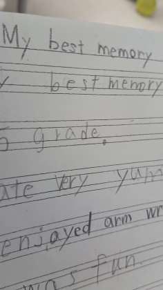 6年生は、先日紹介した外国語のスピーチ「My best memory is・・・」の発表をしていました(先日とは別の学級です)。