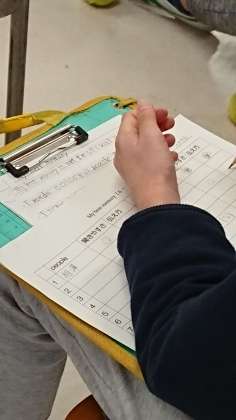 聞いている子供たちもメモをしながら、聞き取ろうとしています。
