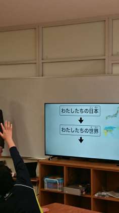 これまでの学習で、食べ物などとからめて、日本や世界について学習をしてきました。日本、世界と来て、次は、「宇宙?」かと、一瞬考えましたが、そんなことを考えている間に子供たちから正解が出ました。