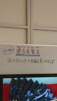 今年度、何とか開催には至ったものの、学校で出かけての鑑賞はしません。今日の5校時に、作品を搬入して準備をした後に、担任が撮影してきた映像を使って、デジタル連合展覧会を行っていました。