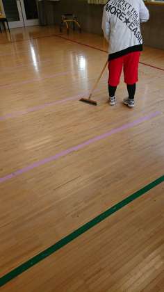 到着したときには、豆まきは終わっていたのですが、小アリーナの床全体に散らばった豆を見て、気持ちよく豆をまいたことが分かりました。きっと鬼も一目散に退散したことでしょう。