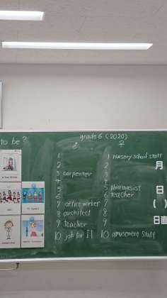 今回は、6年生(松沢小だけではなく)の男女別「なりたい職業ランキング2020」を追いかけながら、単語を確認していました。女子の1位は、nursery school staff、男子の1位はまだ出ていませんでしたが・・・何でしょう。年度によっても異なるので、分かりませんが、人気のある職業はある程度決まっているようです。ちなみに、teacherは、男子の9位に、女子では6位に入っていました。なるほど。