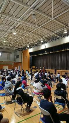 そして、今日は5年生の「音楽鑑賞教室」が行われました。例年、ホールに何校も集まって行っているものですが、今年度は各校の体育館での実施ということで、体育館に広く距離をとって椅子を並べて鑑賞します。東京フィルハーモニー交響楽団による弦楽五重奏です。しばし、豊かな時間を過ごしていました。すてきなヴァイオリンやチェロ、ヴィオラの「ビブ」ラートが体育館に響き渡っていました。