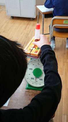 ここまで、長さや重さについての学習を進めてきました。今日は、「500g」の重さを作り、それがどれくらいの重さになるのか、体感する学習をしていました。