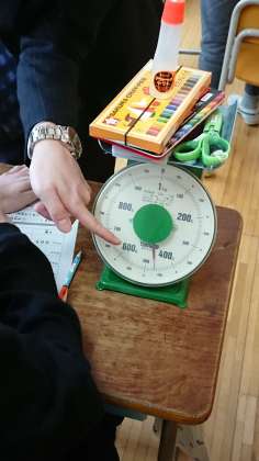 皆で、写真を見ながら、何と何で500gになったのか発表しました。500gってこれぐらいの重さなんだ、という感触がつかめたでしょうか。