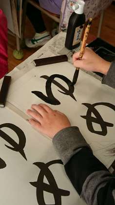 写真を見て、「うまいっ!」と思った方、すみません。これは練習の序盤に手本をなぞって練習しているところです。