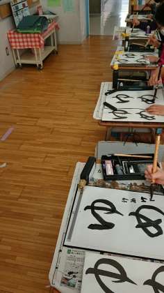 4年生の毛筆書写です。今日は、平仮名で「ゆめ」を書いていました。