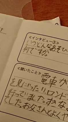 今日は、0〜2才の頃のことをお家の方にインタビューした結果を交流していました。皆、自分のことをうれしそうに話しています。
